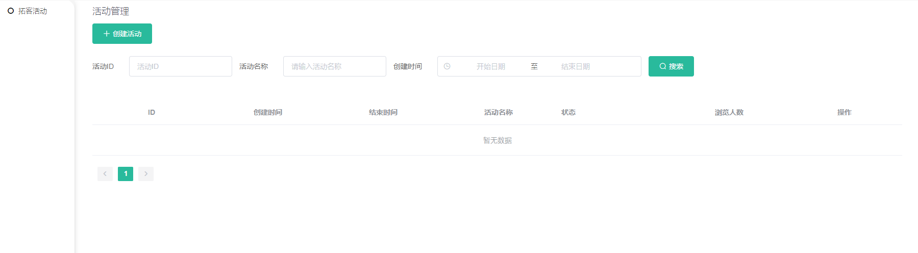 1、可根据活动ID、活动名称、活动创建时间查询.