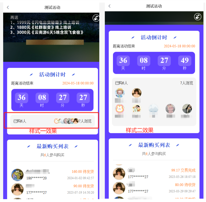 功能简介:指定一个商品创建一个拓客活动,前端活动页面显示活动时间、参与人数、该商品佣金记录、客服等,吸引更多会员参与购买产品。