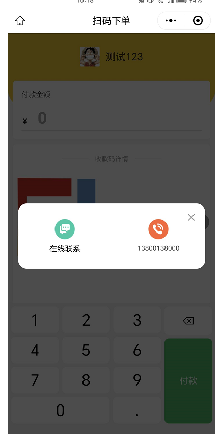 3、输入金额,点击付款(若收款码下架,付款按钮显示为灰色)