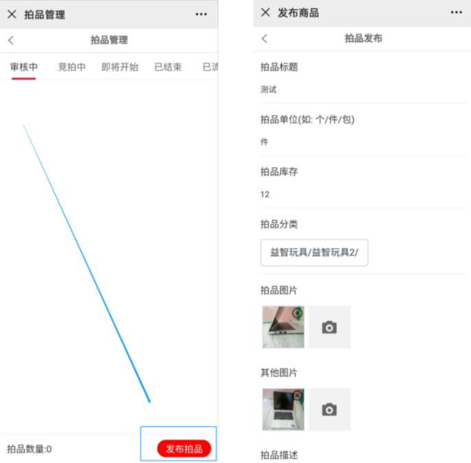1、拍卖管理——拍品管理——发布拍品