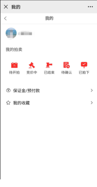 聚合页中,点击“我的”图标(如下图),进入拍卖会员中心,查看会员参与的拍卖,保证金记录、我的收藏等