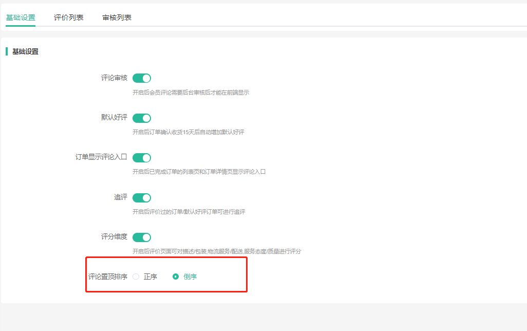 正序置顶评论:按照评价时间先后显示