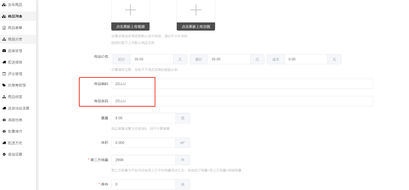 同一个商品同规格内的编码、条码可以填写一样,但不同商品、不同规格之间编码、条码则需要填不一样的,这是推送到第三方那边显示出来的编号,用来区分商品的。编码条码可以随意自行生成填写,也可以根据商品实际的编码填写。