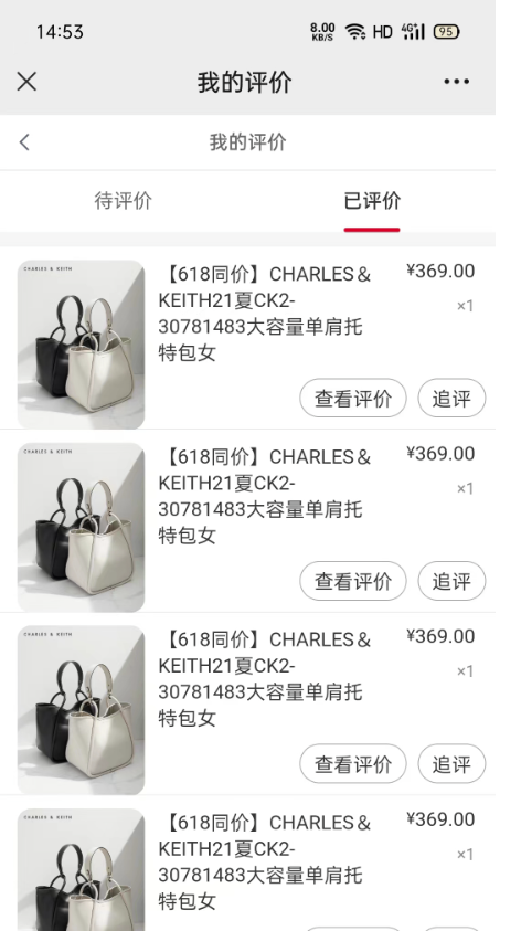 开启后评价过的订单/默认好评订单可进行追评,可以在我的订单,或我的评价可以看到追评入口,效果如下.